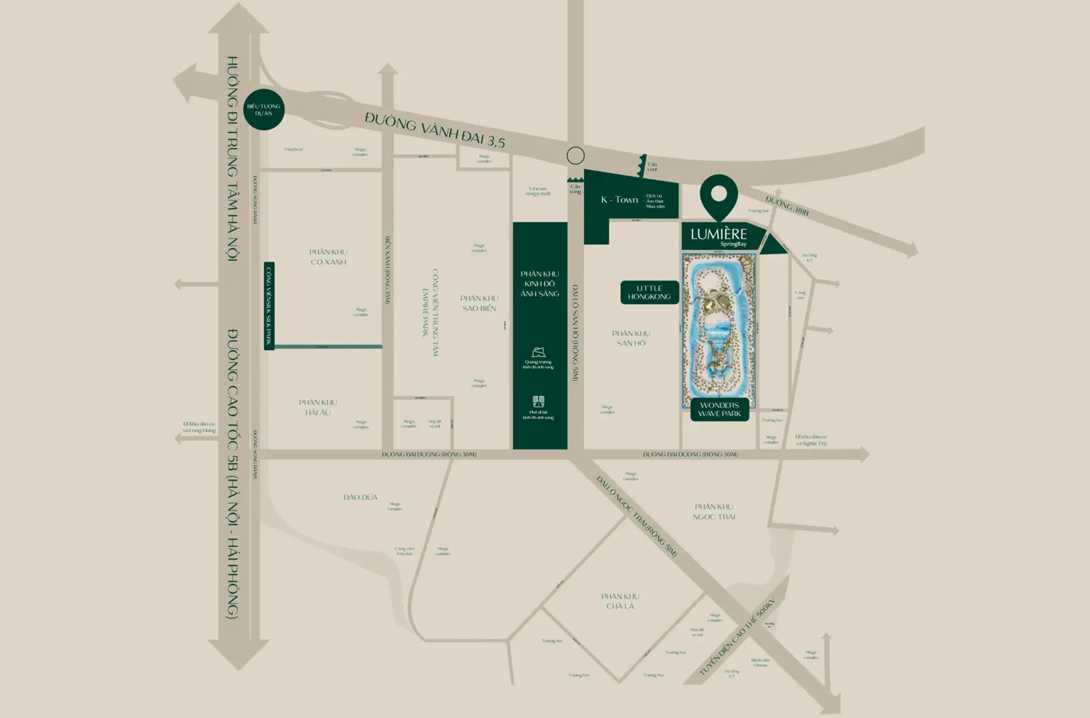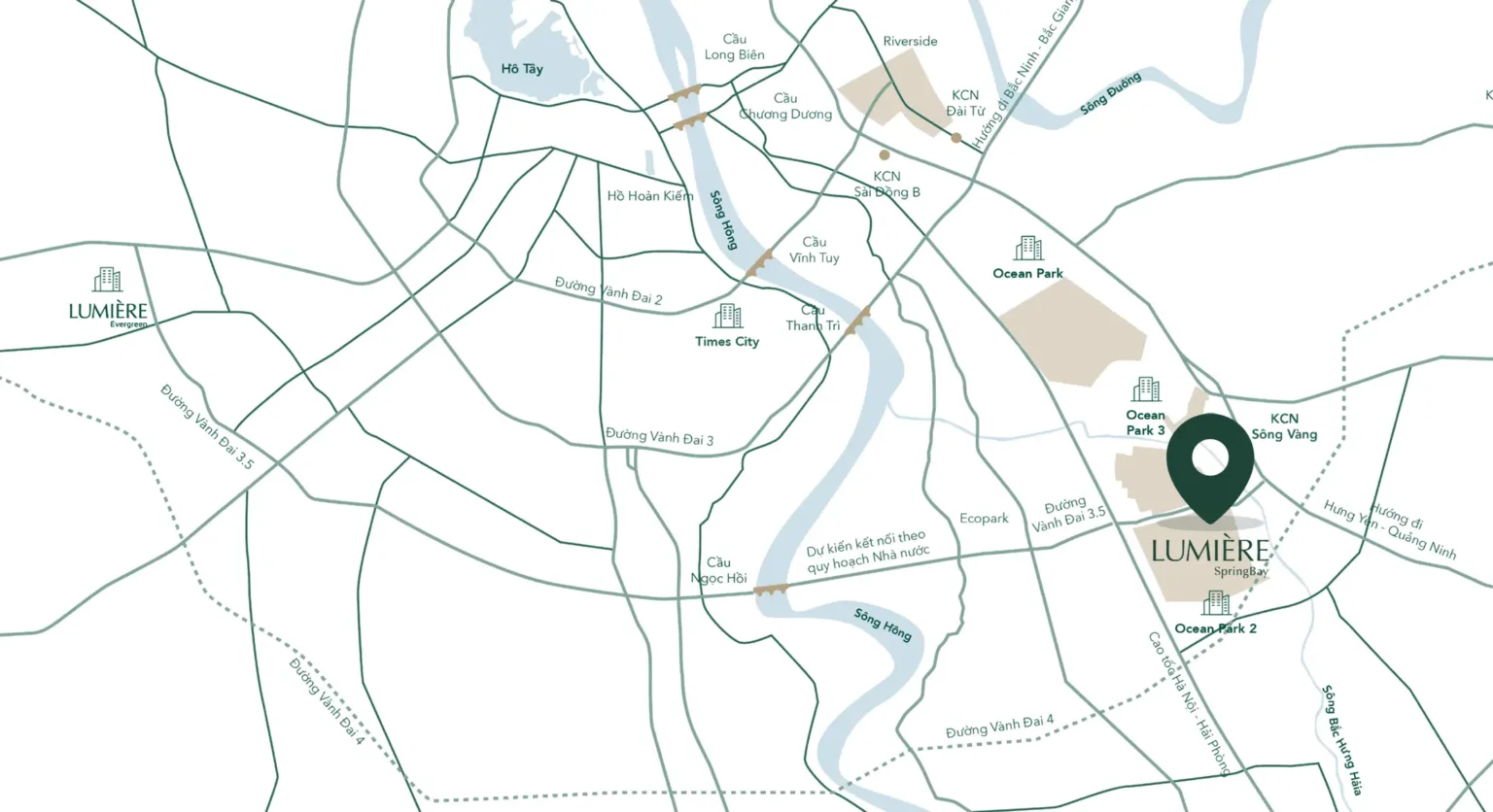 Tiềm năng phát triển của Lumière Midtown còn được thể hiện qua thời gian di chuyển ngắn đến các điểm quan trọng: 3 phút đến Vinhomes Ocean Park giai đoạn 1, 10 phút đến cầu Vĩnh Tuy, 20 phút đến hồ Hoàn Kiếm, và chỉ 40 phút đến sân bay quốc tế Nội Bài. Đặc biệt, chỉ mất 90 phút để đến Vịnh Hạ Long – một trong 7 kỳ quan thiên nhiên của thế giới.