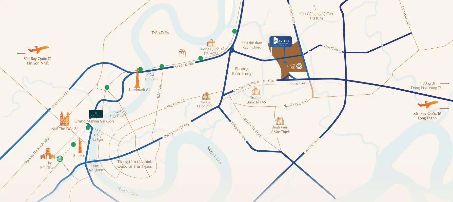 Tọa lạc ngay điểm giao thoa chiến lược, kế cận hệ tiện ích thương mại – giải trí – giao thương sôi động của khu đô thị quốc tế The Global City, Masteri Cosmo Central giúp cư dân kết nối mọi trải nghiệm nội khu chỉ trong 5 phút. Mỗi nhịp sống đều đề cao hiệu năng, cân bằng trọn vẹn: sống – làm việc – thư giãn trong cùng một bán kính tiện nghi.