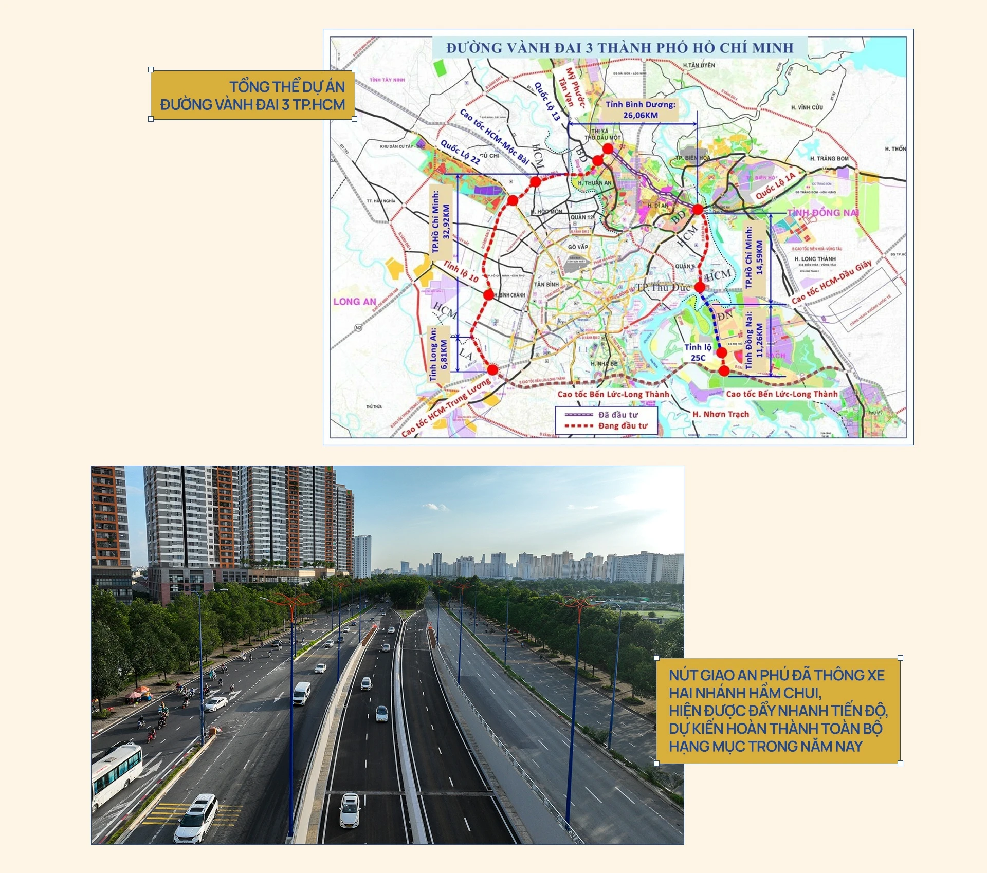 Cũng vì vậy, phần lớn dự án giao thông trọng điểm được TP.HCM xúc tiến triển khai trong những năm gần đây đều tập trung tại khu đông, với nhiều công trình đang bước vào giai đoạn hoàn thiện. Dự kiến trong năm nay, đường Vành đai 3 TP.HCM sẽ thông xe toàn tuyến, nút giao An Phú và dự án mở rộng cao tốc TP.HCM – Long Thành – Dầu Giây lên 8 làn xe cũng sẽ hoàn thành, kỳ vọng mở rộng hơn nữa không gian phát triển liên vùng và giao thương quốc tế cho thành phố.